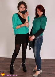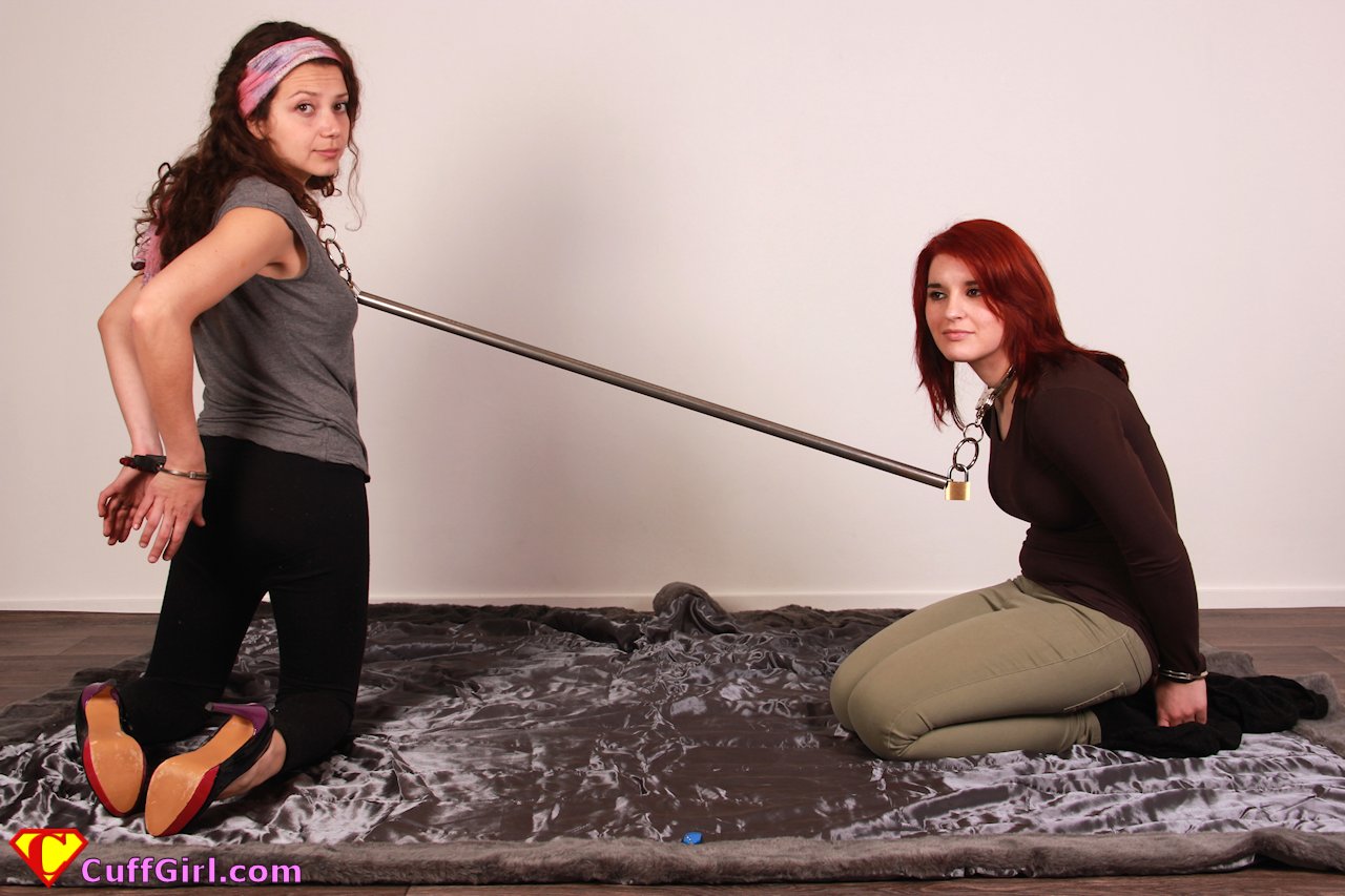 I figured it would be interesting to see if me and Anahí were too far apart to help each other get out of our handcuffs. What better way to do this than to put a huge spreader bar between our neck cuffs! We cuff ourselves with speedcuffs (keyholes facing away from hands), and then we try to help each other out. It is not a competition, it is just a test to see if we can help each other!