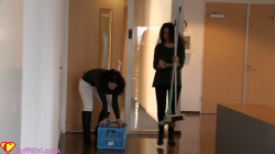 Even more bondage gear! I am not sure about all this. I just like handcuffs, I think some people are trying to push me in some kinky direction I still have to discover. I don’t know… Anahí seems to like it on the other hand. But this armbinder was her size anyway! She is more flexible! And yes, she actually owns a leather dress…